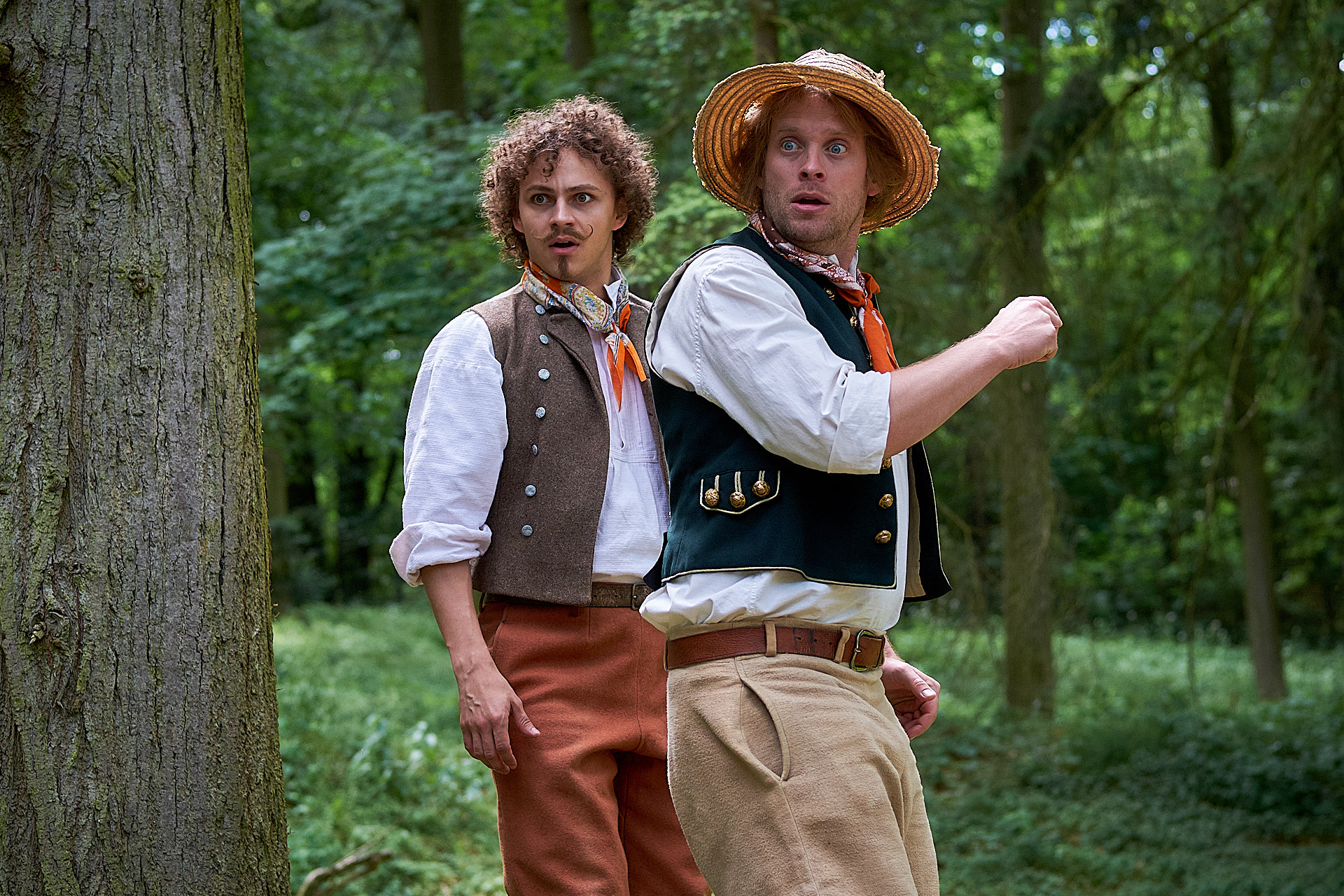 Úlohu sa im však od začiatku nedarí splniť, a namiesto toho, aby ľudí zvádzali k hriechom, im neúmyselne pomáhajú. V prestrojení za paholkov sa dostanú na statok a zdá sa, že konečne budú mať úspech. Vypočítavý sedliak totiž chce svoju dcéru Haničku vydať za nafúkaného statkára Kopyta. Hanička však miluje šuhaja Jána, a aby všetko dobre dopadlo, je potrebné vziať si na pomoc pekelné sily.