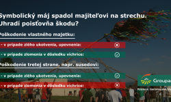 Takúto nepríjemnú skúsenosť má aj klient poisťovne Groupama z malej obce na severnom Slovensku. Každoročne s rodinou stavajú máj a nevynechali ani tento rok. Silný vietor ale máj rozlomila odlomená časť padla klientovi na strechu rodinného domu. Pri nehode sa našťastie nikto nezranil, takže klient utrpel len majetkovú škodu. „Táto nehoda je aj pre nás v poisťovni Groupama veľmi neobvyklá. Klient ale má uzatvorené poistenie nehnuteľnosti a domácnosti, ktoré zahŕňa aj poistenie pre prípad živelných rizík, čo znamená, že sa môže s touto škodovou udalosťou obrátiť na poisťovňu,“ vysvetľuje marketingový konzultant poisťovne Groupama, Ivan Bobošík.